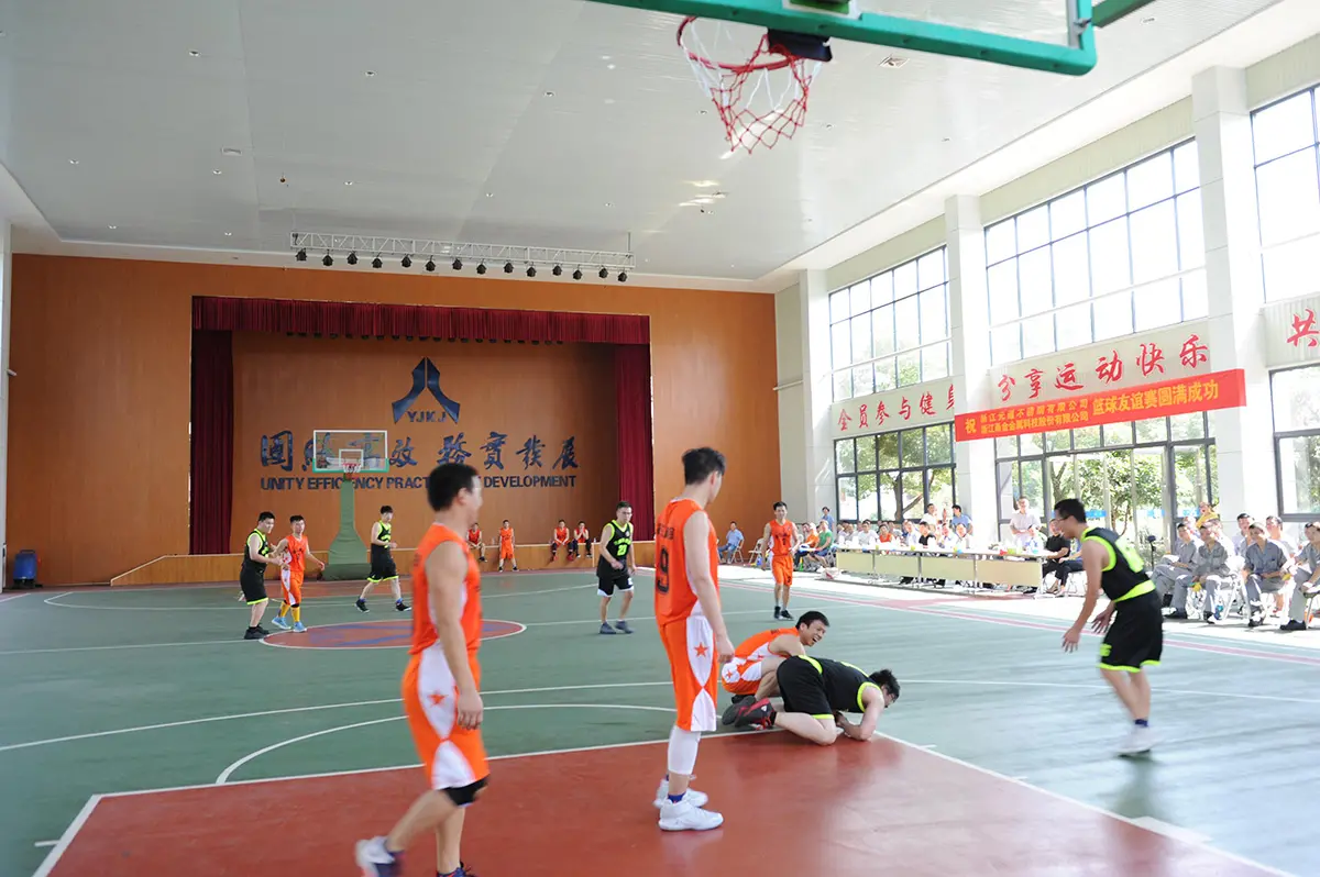 9月20日上午,浙江甬金篮球队与浙江元通不锈钢有限公司篮球队,在我公司体育馆举行了一场篮球友谊赛。浙江甬金金属科技股份有限公司董事长虞纪群和浙江元通不锈钢有限公司董事长郑光良以及双方公司领导到现场观看比赛。